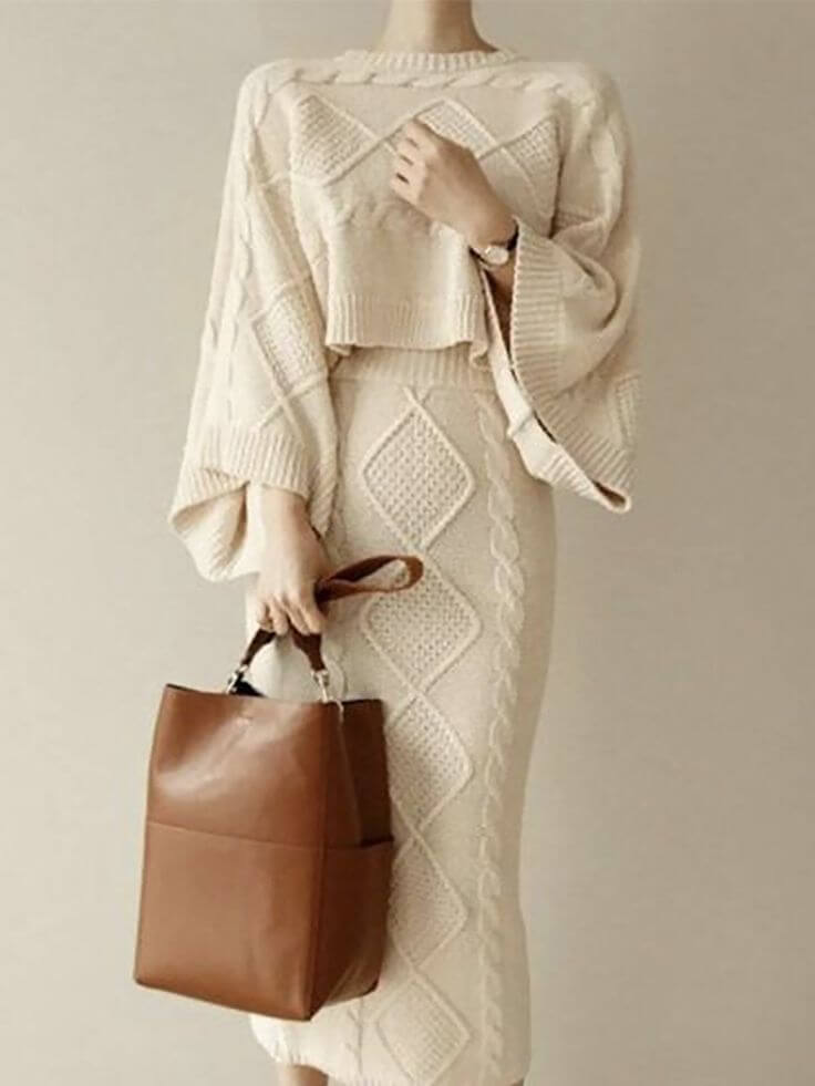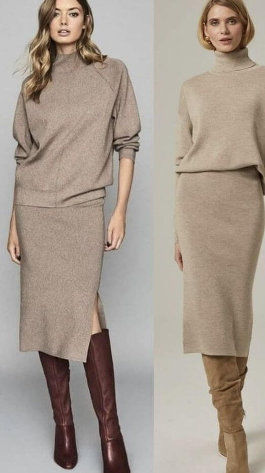 니트 스커트: 니트 소재의 스커트는 따뜻하면서도 우아한 분위기를 줍니다. 특히 롱 니트 스커트는 체형을 날씬하게 만들어주며, 다양한 상의와 매치할 수 있어 활용도가 높습니다.
