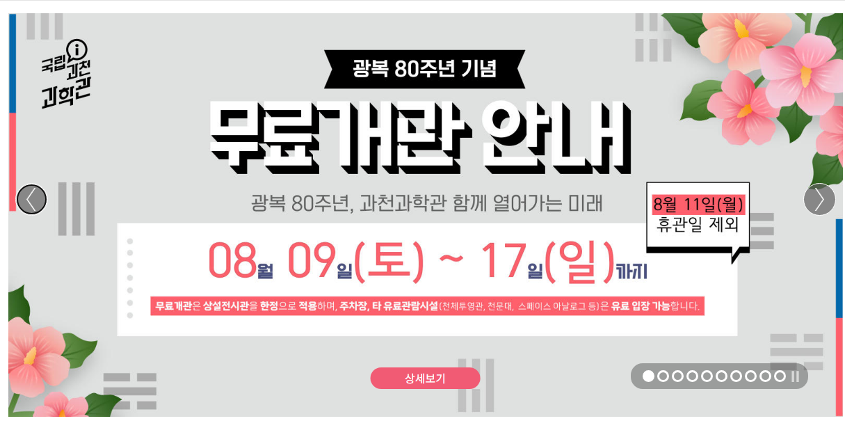 무료개관일정-국립과천과학관 홈페이지 제공