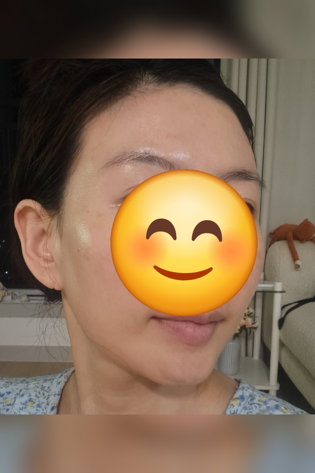 이 사진은 올 여름들어 가장 말랐을 때의 얼굴이예요. 보시다시피 턱이 쪼그라들 정도로 얼굴에 살이 없어요. 앞모습에서 입꼬리를 위로 끌어 당기며 미소를 지을때는 볼이 나름 탱탱해져서 티가 나지 않지만 무표정하게 있을때면 전형적인 심한 땅콩형 얼굴인걸 보실 수 있어요. 그래서 습관적으로 입꼬리를 당겨 웃는 표정을 지으며 지냈는데 사람 표정이 어디 하나로 지어지나요. 가끔 거울에 비친 얼굴을 볼 때면 옆광대 쪽으로 움푹 들어간 볼에 그늘이 져 얼굴이 더 우울하고 불쌍해 보이더라구요.